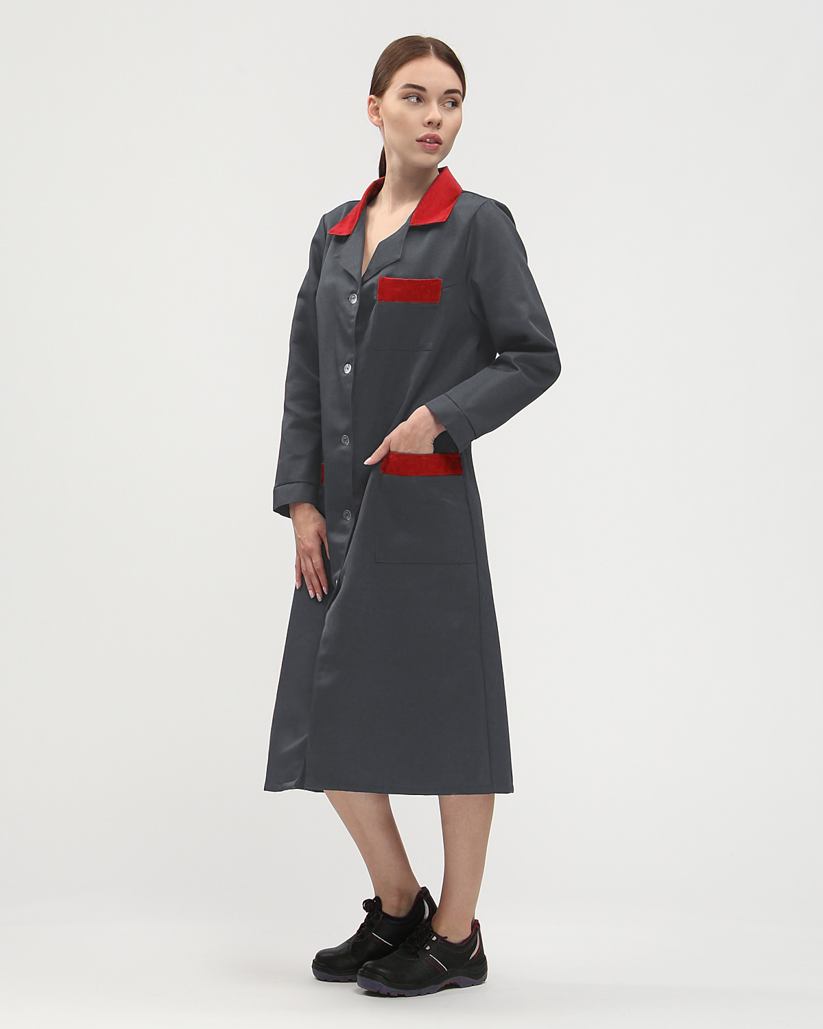 Халат женский Технолог (тк.Смесовая,210), т.серый/красный